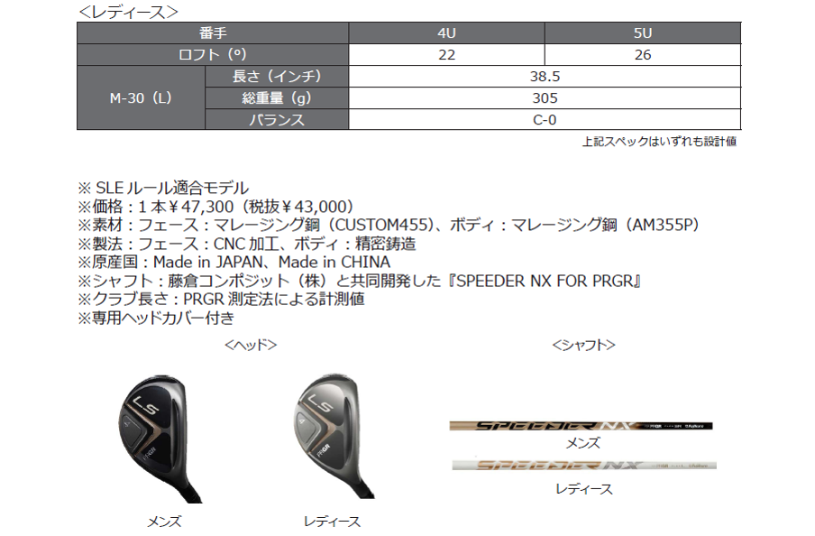 (株)プロギアは、ヘッドスピード40m/s前後のゴルファーに向けた「LS(エルエス)」シリーズから「LSフェアウェイウッド」「LSユーティリティ」を5月19日から発売します。打ちやすさとキャリー重視の正確な飛びでスコアアップが狙えるやさしい実戦型クラブに設計しました。同様のコンセプトで女性の平均的なヘッドスピード30m/s前後のゴルファー向けに専用設計を施したレディースモデルもラインアップします。