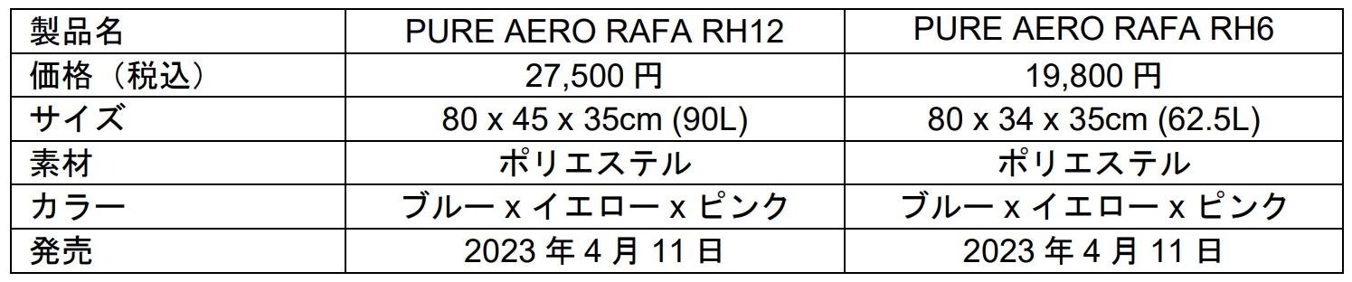 【PURE AERO RAFA】シリーズ新製品ラインアップ