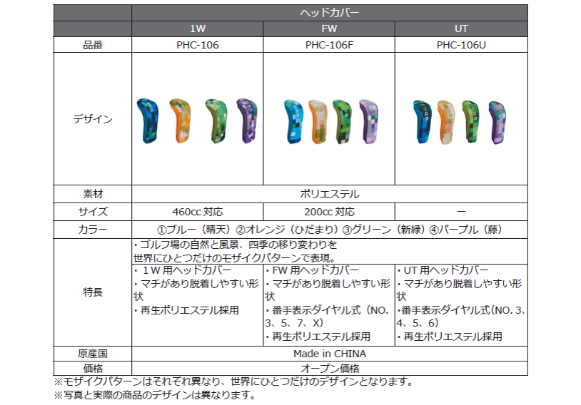 ※全てのアイテムのパープルはPRGR直営店、PRGR GINZA ONLINE SHOP限定カラーとなります。