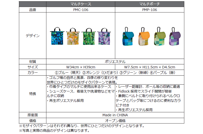 ※PMP-106マルチポーチとPCBC-106トラベルカバーはPRGR直営店、PRGR GINZA ONLINE SHOPアイテムとなります。