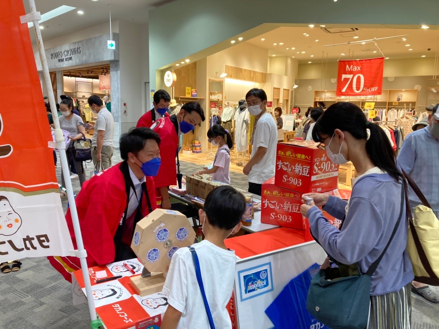 例年大好評の「おかめグッズ」を販売!そのほかタカノフーズ様と森永乳業様のコラボレーションも実施。選手たちも食べているタカノフーズ様の「すごい納豆S-903」は、添付品の「乳酸菌入りたれ」に森永乳業様の「シールド乳酸菌® 」が配合されています!