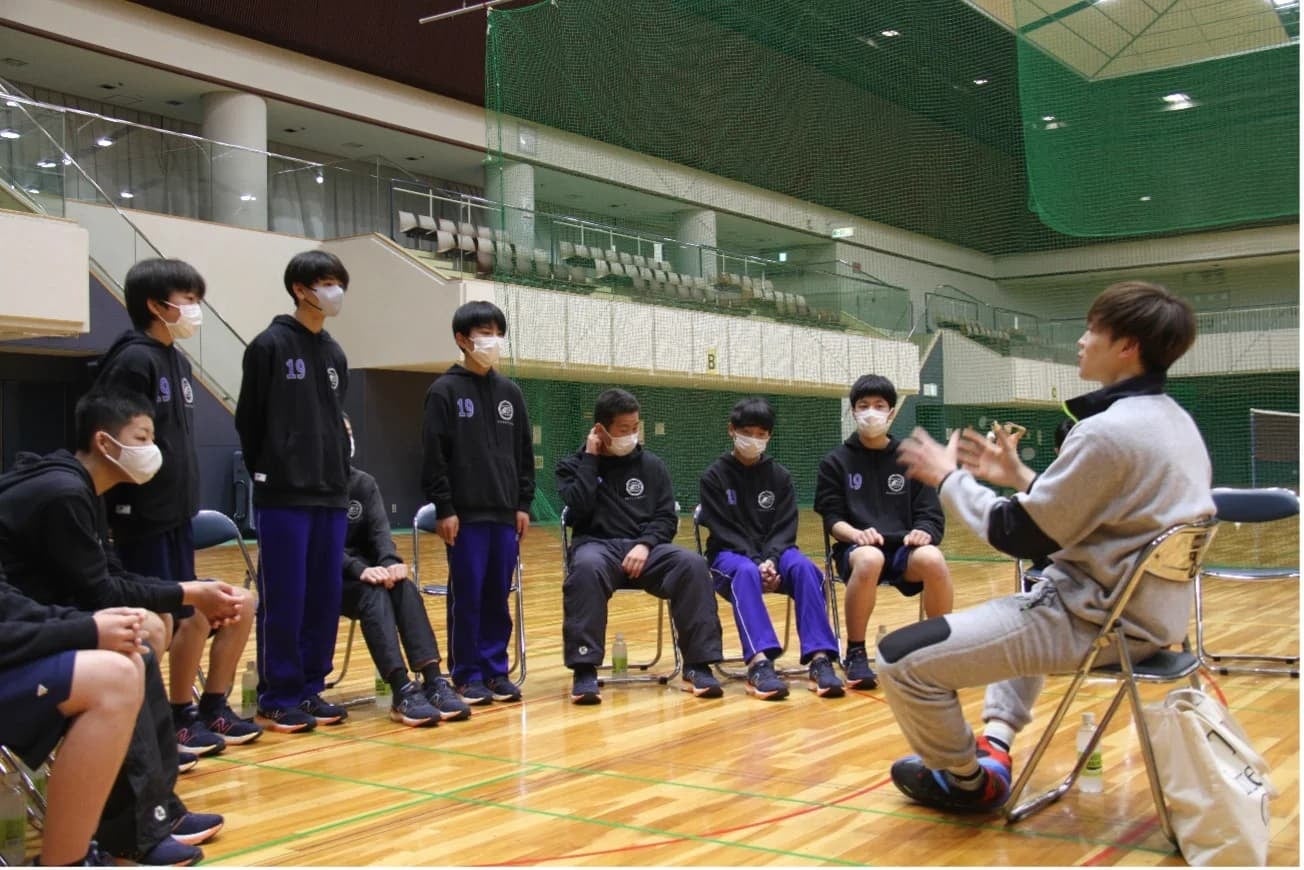 また、翌4月3日(月)には、海陽中学校の生徒の皆さんとの交流を深めるために、バスケットボールの指導やシュート対決などのイベントが行われました。