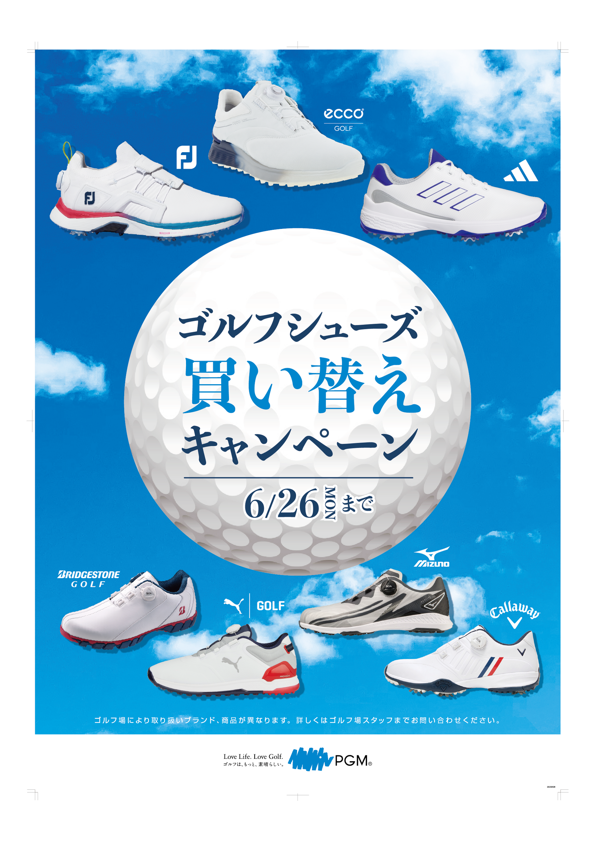 パシフィックゴルフマネージメント株式会社(本社:東京都台東区東上野/代表取締役社長 田中 耕太郎、以下「PGM」)は、2023年4月15日(土)より全国のPGMゴルフ場にて、ブランドゴルフシューズが期間限定の特別価格で購入できる「ゴルフシューズ買い替えキャンペーン」(以下「本キャンペーン」)を開催します。