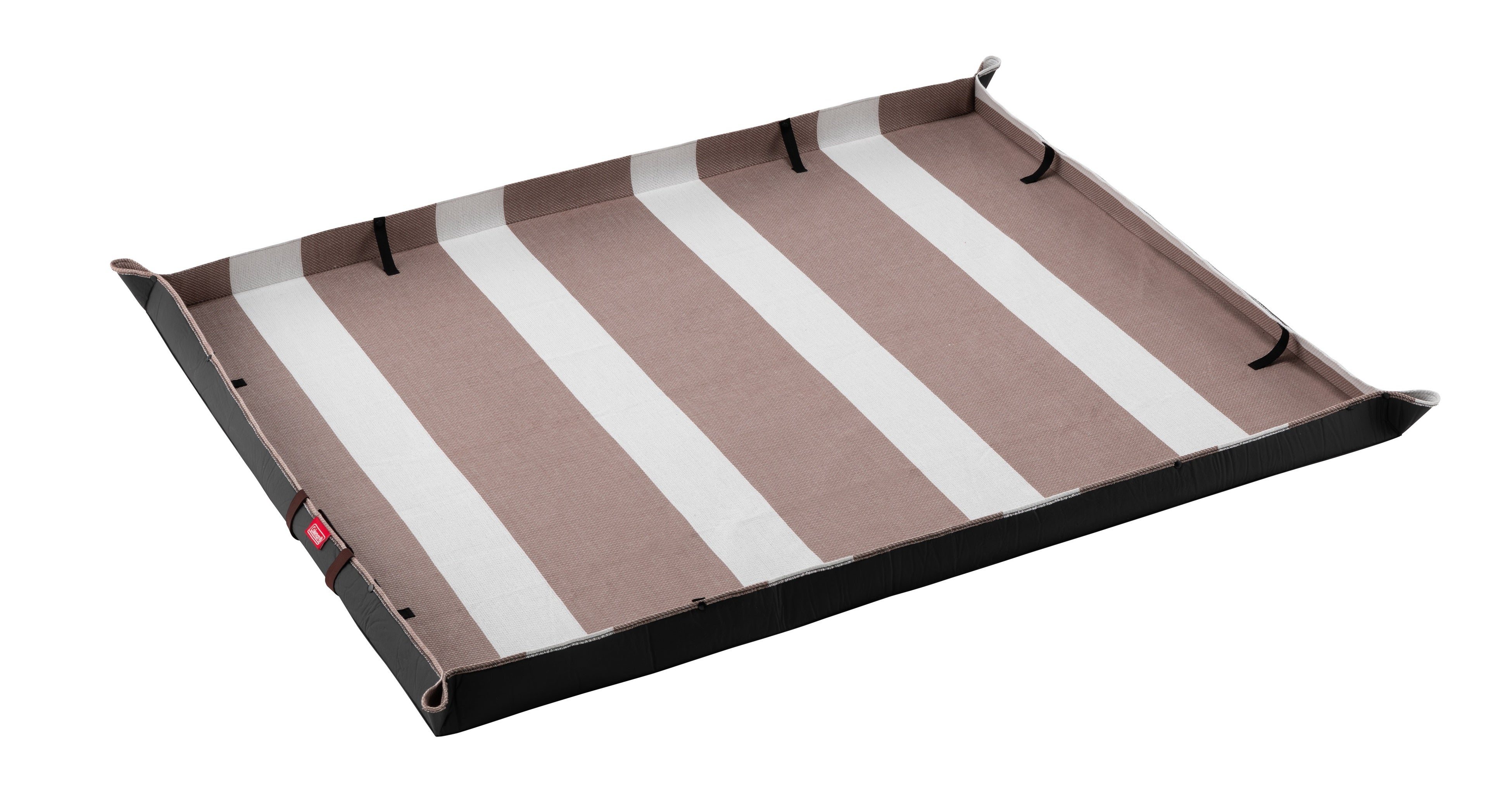 表地は手触りの良い起毛ポリエステル、裏地は水を通さないPEVA素材を採用したレジャーシート。縁を立ち上げて固定すれば砂や小石、虫などが入りにくくなります。サイズは、大人4人が座ることができインスタントアップ IGシェードにもぴったりフィットする“デラックス”(約210×170cm)と、大人2人が座れるコンパクトな“デラックスミニ”(約150×100cm)の2種類。また、カラーは落ち着いた色合いで自然に馴染む“グレージュストライプ”と、明るく楽しい気分を演出する“エメラルド”の2色展開です。
