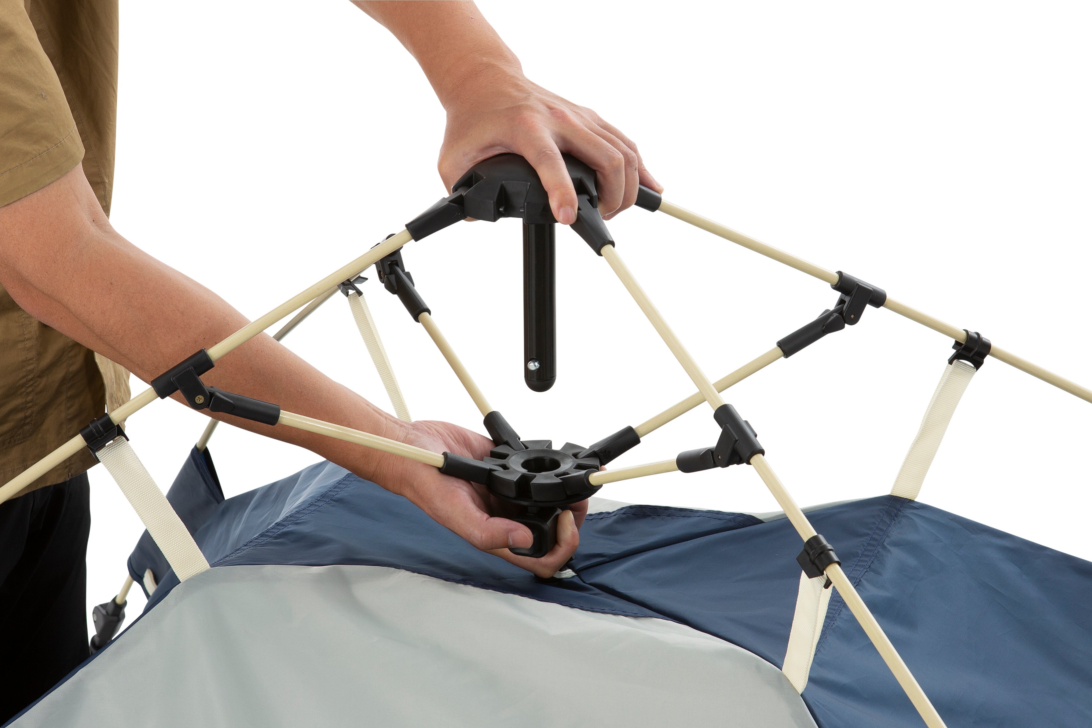 フレーム上部のハブを差し込んでフレーム脚部を伸ばすだけのワンタッチロック機構により簡単に設営/撤収ができるサンシェード。住友化学が独自開発した防虫素材“Olytec®メッシュ”を使用しているため、いやな虫も寄り付きにくく安心です。またテント生地はUVPROを採用し日光と紫外線を軽減してくれます。ペグを使用できない場所でも本体を固定できる砂袋が付属しているため、ビーチやプールサイドで使えるのもポイントです。