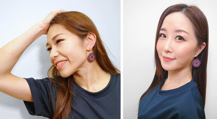 専属チアリーダーRay-Glittersのロゴをモチーフに、会津型のデザインを取り入れた、耳飾り&ブローチ。