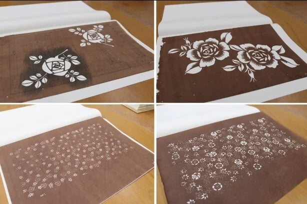 江戸時代から着物の柄を染めるため使われてきた染型紙(そめかたがみ)。