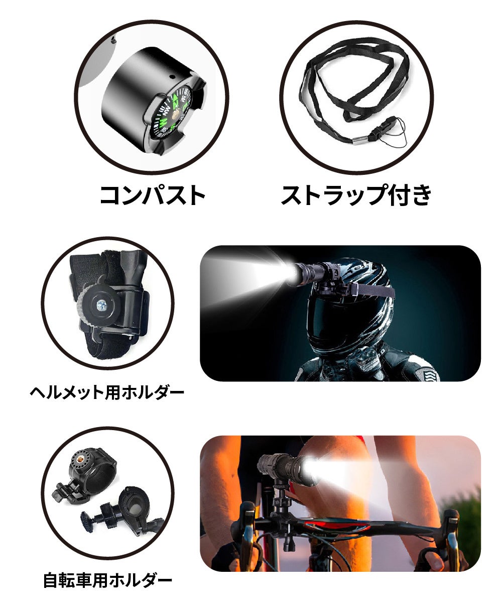 ・ストラップ、ヘルメット用ホルダー、自転車用ホルダー付属