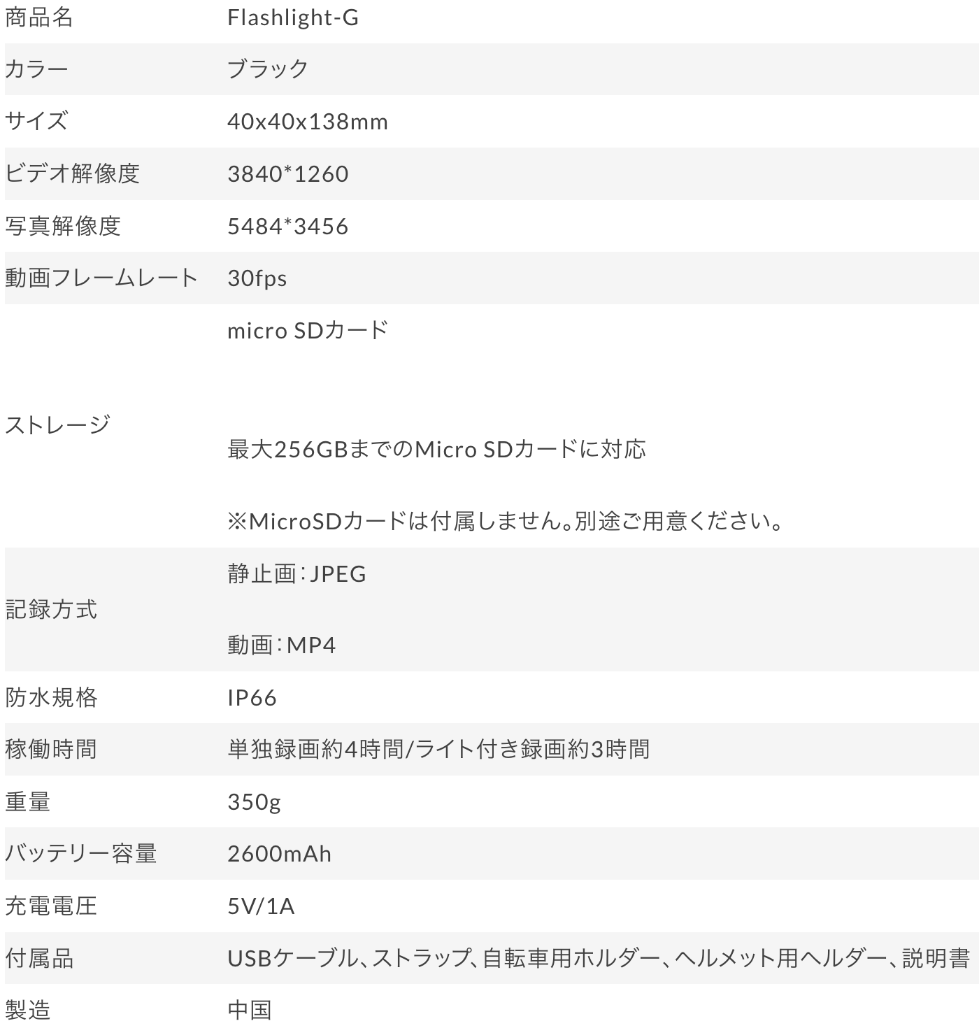 Flashlight-Gは4Kハイビジョンカメラ搭載。