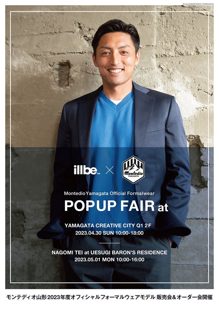 当日は本フォーマルウェアのディレクターで元モンテディオ山形選手の廣瀨智靖氏が店頭に立ち、お客様の対応を行います。また、同氏が手掛けるオーダースーツレーベル「illbe」のオーダー会も実施いたします。