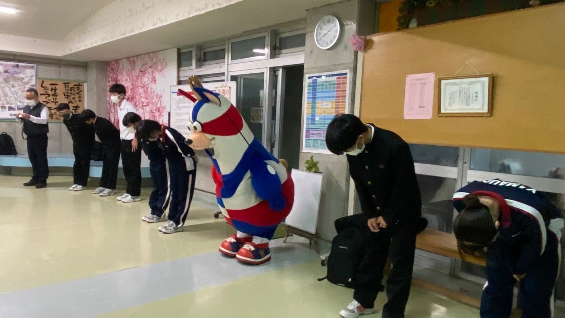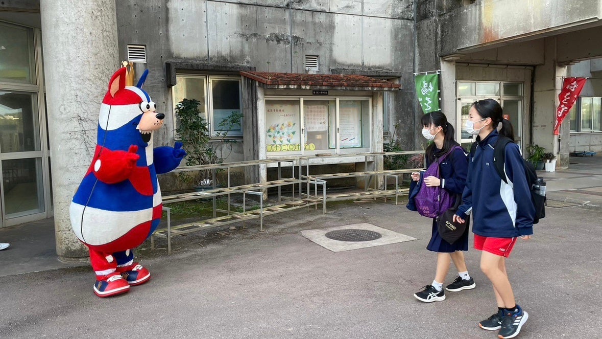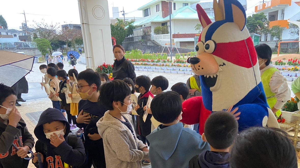 「おおきなわ」の活動の一環として2022年10月から行っている「ゴーディーによる朝のあいさつ運動」にて、2月は沖縄市内の小中学校(9校)、北谷町内の小学校(2校)にて朝のあいさつ運動に参加しました。ご協力いただいた各小学校の皆さま、ありがとうございました。