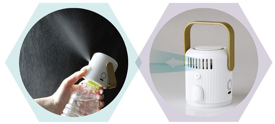 「ミストファン ボトルキャップ」は、ペットボトルに取り付けるだけで簡単に風とミストで涼むことができる扇風機です。ミストを浴びながら風が当たるとより涼しく感じる気化熱の原理を利用し、ミストと扇風機の相乗効果で暑い夏をより快適に涼むことができます。手軽に持ち運べるコンパクトなサイズで、夏場のスポーツ観戦やアウトドアにおすすめ。気軽に持ち歩ける携帯性も魅力です。