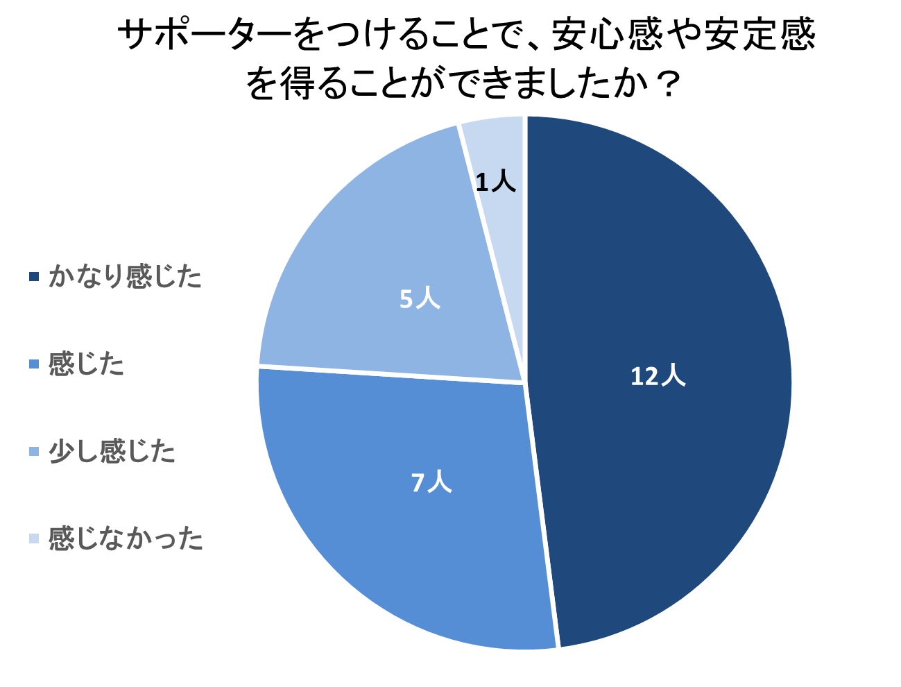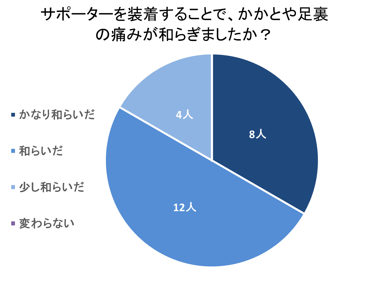 →「ヒール&アーチサポーター」を装着することで、25名の方が安心感や安定感を得られていた。