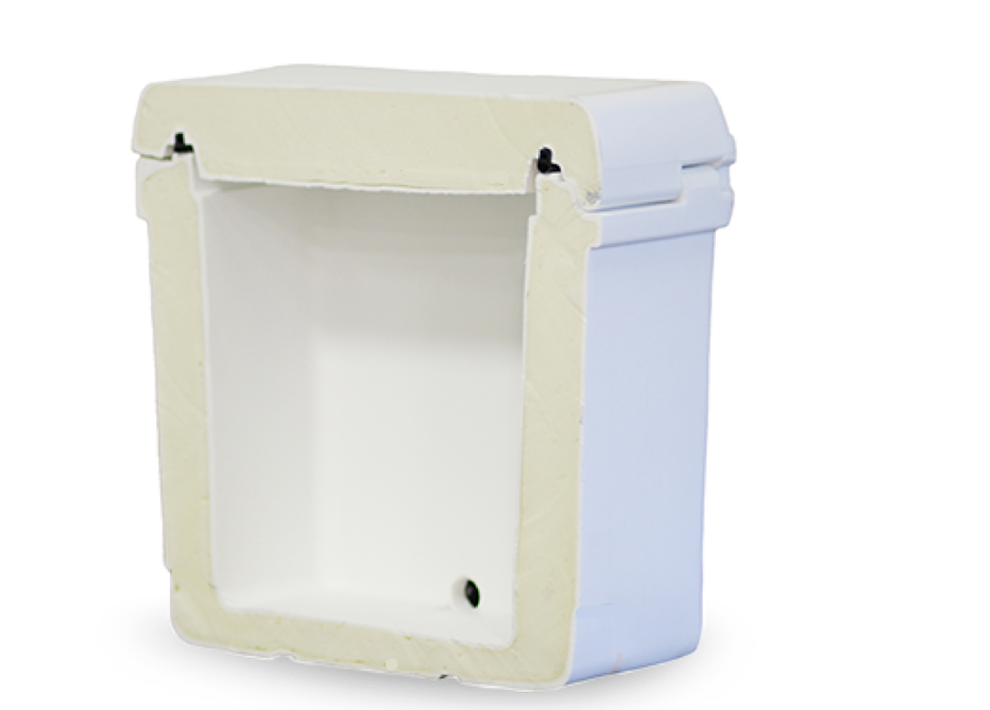 発泡ウレタンは冷蔵庫や冷凍コンテナなどでも採用されているほど断熱材の種類の中でも断熱効果が良いと言われています。この発泡ウレタンを、隙間なく圧力注入する事で、冷気漏れを抑制し保冷力を大幅にアップさせます。