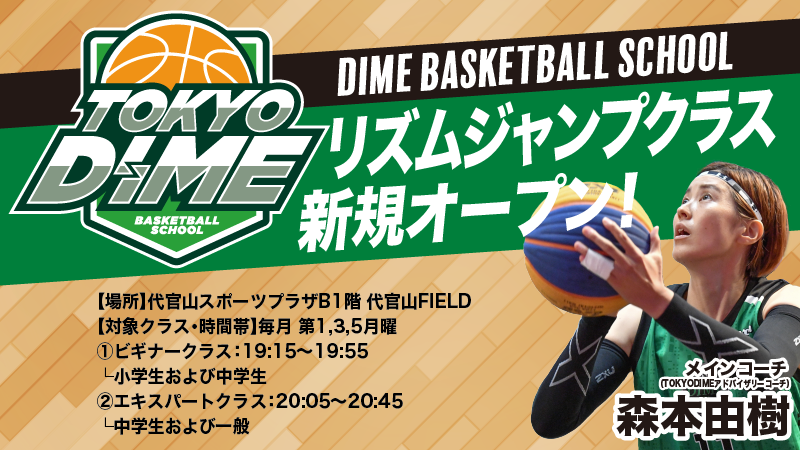 TOKYO DIMEが運営する「DIME Basketball School」は、東陽町校、日本橋校、渋谷ひがし校に続く4校目として、6月より代官山スポーツプラザでリズムジャンプトレーニングクラスを開校することになりました。開校に伴い、スクール生の募集を開始いたします。