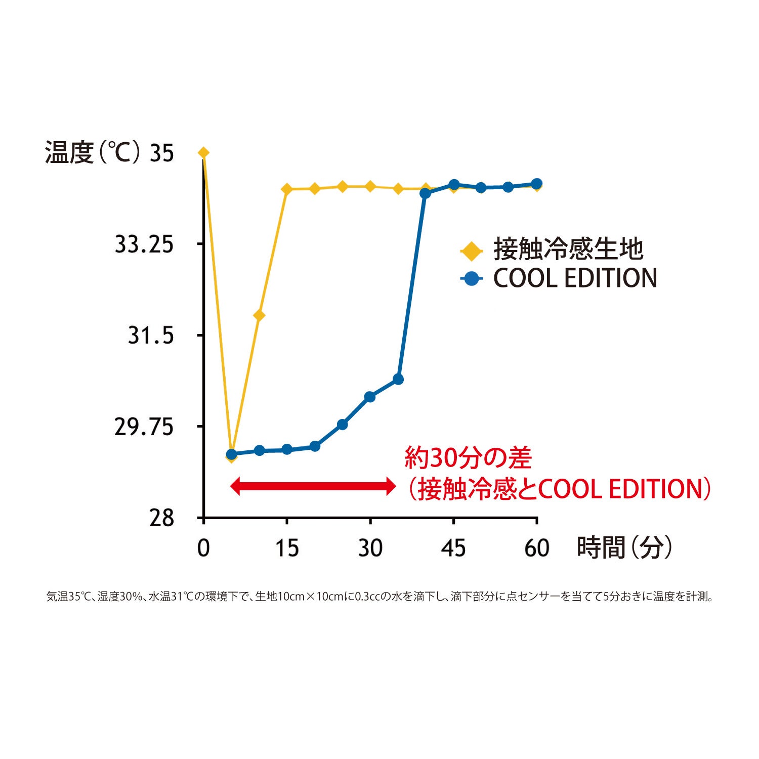 ※3)水分(汗)を吸収した際に生地自体の温度が下がり、冷感が得られます。水分がある限り冷感が持続します。