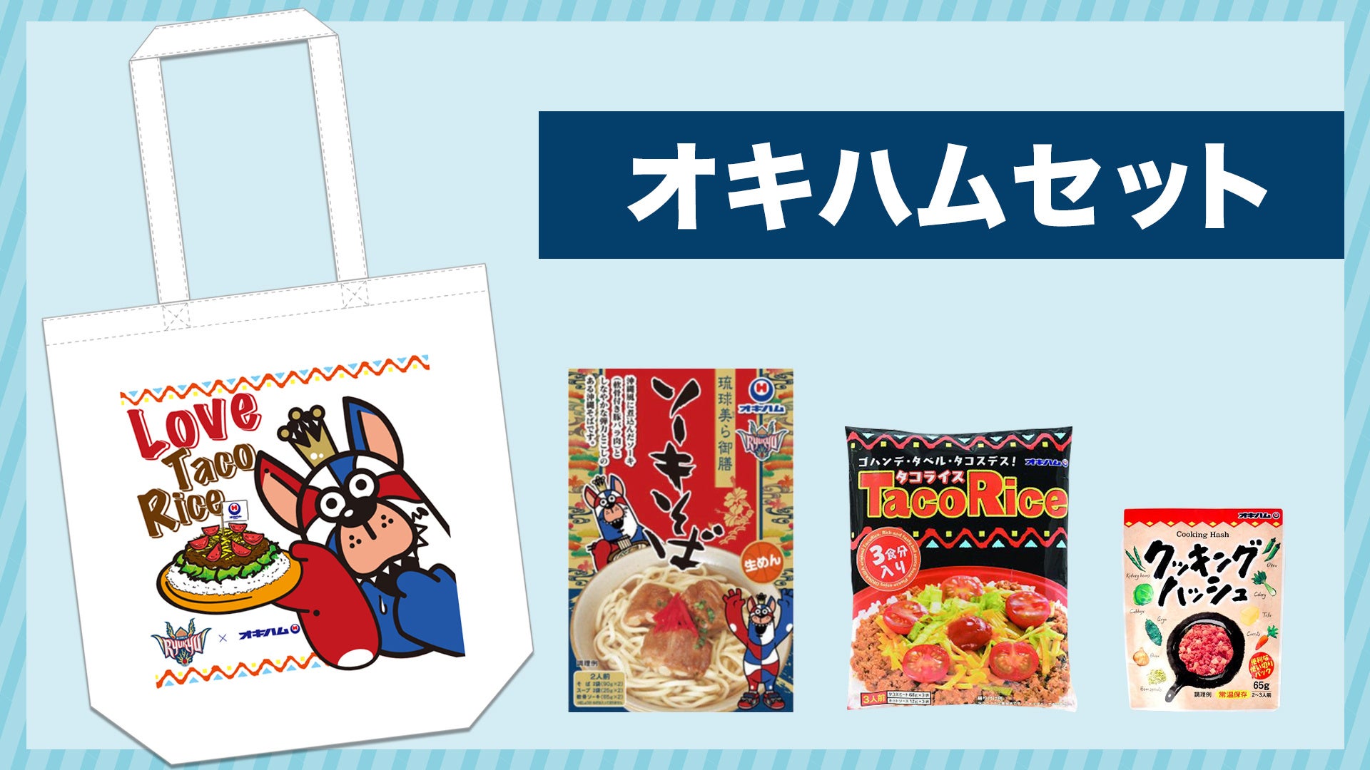 キングスのマスコット・ゴーディーがデザインされたオリジナルトートバッグに、沖縄料理やお土産が好評なオキハムの人気商品の詰め合わせセットが入った数量限定商品となっていますので、ぜひこの機会にお買い求めください。
