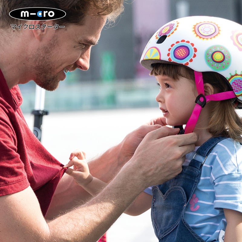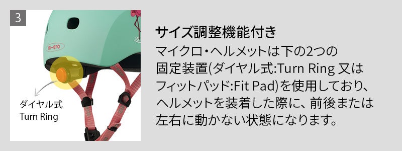 ダイヤル方式で子供の頭周りに合うようにサイズ調節が可能なマイクロヘルメット