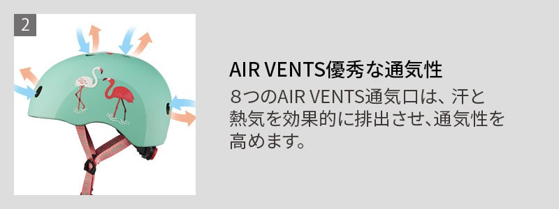 前後方の8つの通気口があり、頭の熱を外に逃がし空気の循環を円滑にします
