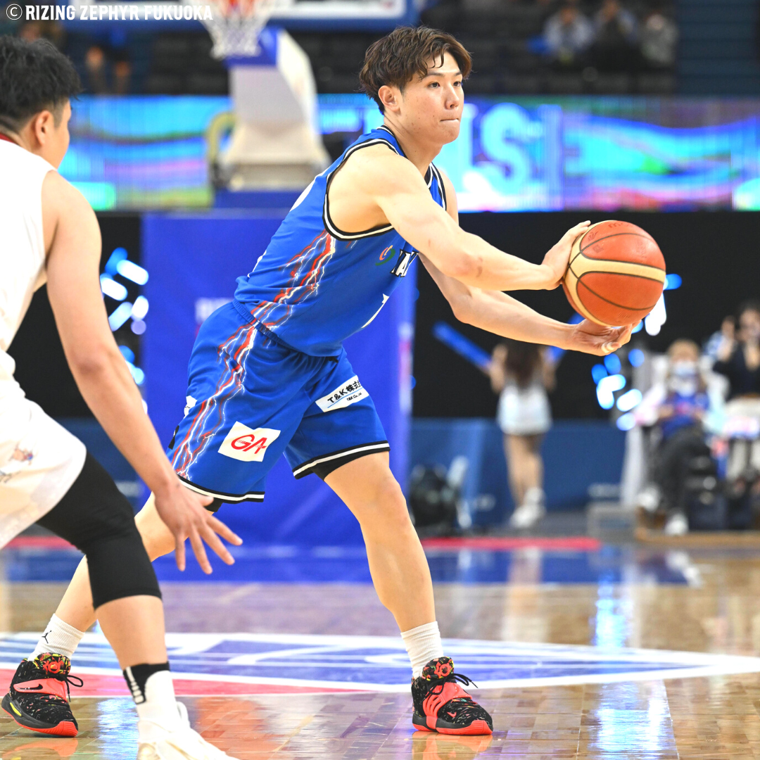 前節の試合でB2 残留を果たした両チーム。まずは奈良のロケットスタート。8 点連続のオフェンスを繰り出し、たまらずライジングはタイムアウト。立て直しを図るも、完全にペースを握られ17 点リードと、選手の表情も重くなる。ホーム最終戦を勝利で飾るべく、切り替えのきっかけとなったのは#33 ジマルマンと#18 菅の得点だった。#33 ジマルマンは#88 重冨との連携プレーでダンクを披露し会場を湧かせ、ミドルレンジからのシュートもなんなく決める。#18 菅も3P シュートや、前半のブザービーターでゴール下を決め、得点を重ねる。ファールに苦しむも福岡33-44 奈良で後半に折り返す。