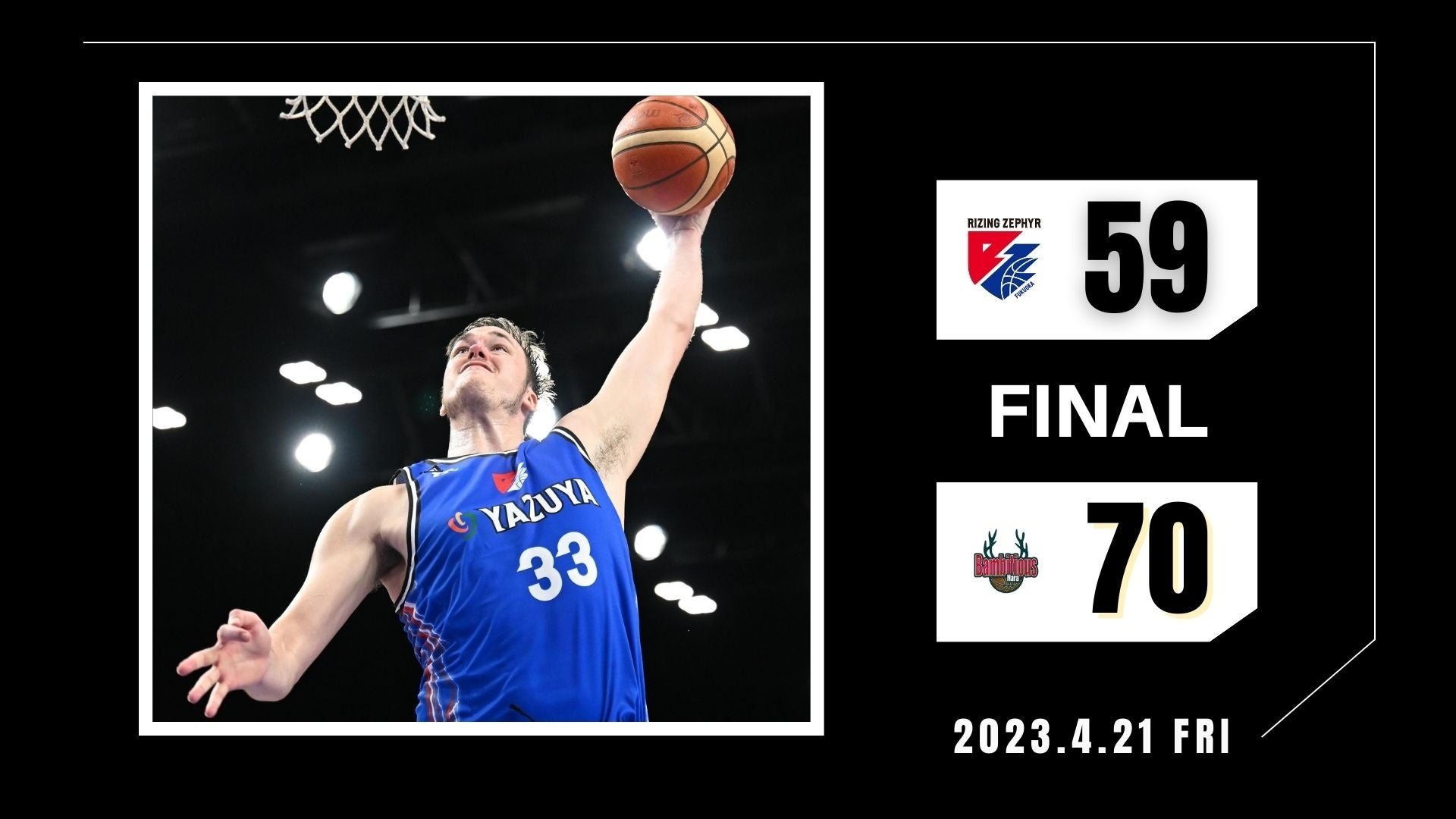 2023年4月21日(金)に開催されましたBリーグ第32節【ライジングゼファーフクオカvs.バンビシャス奈良】において“福岡59-70奈良”の結果となりましたことお知らせいたします。