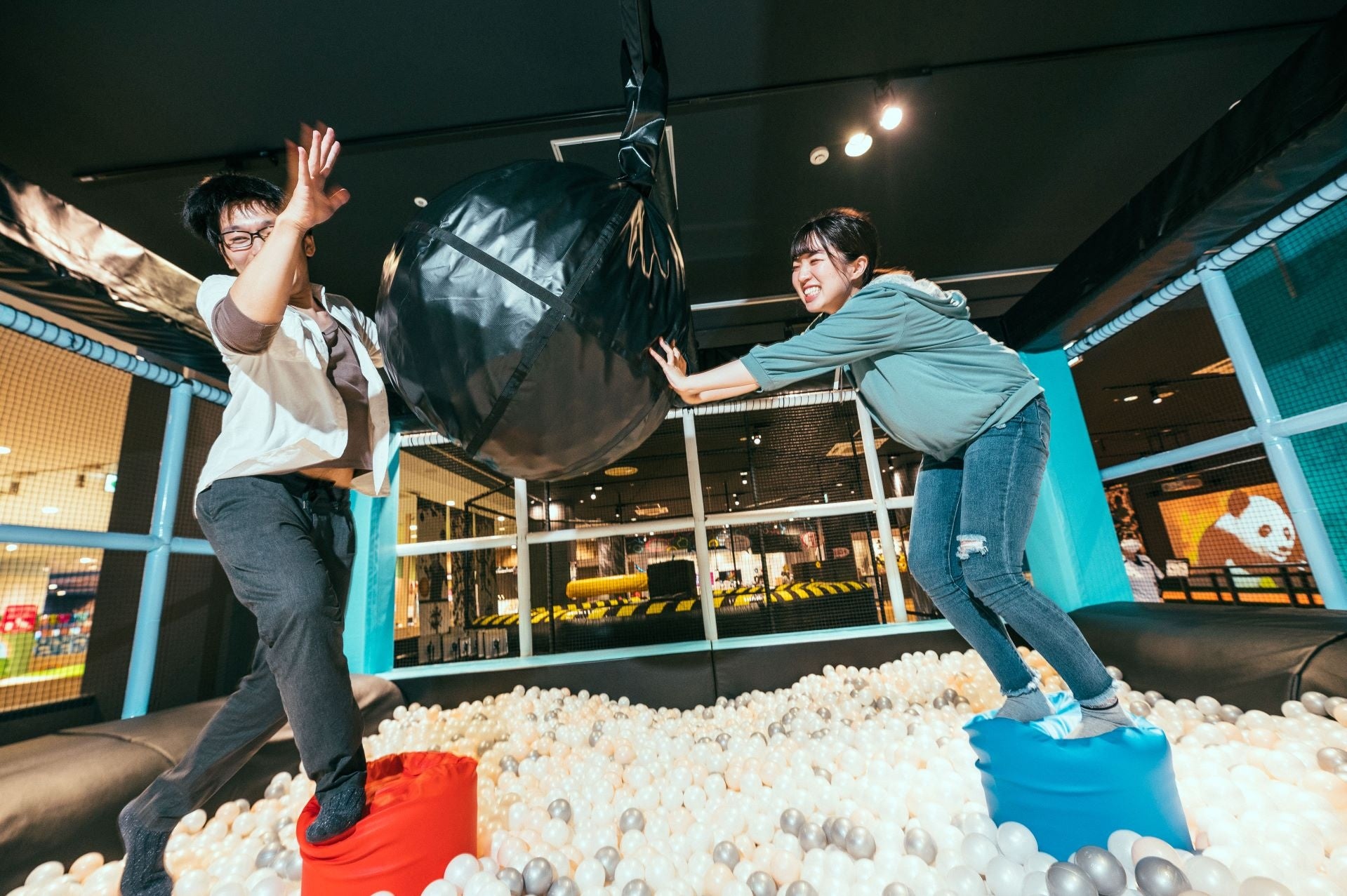 体を動かしながらまるでバラエティ番組に参加しているような体験ができる新感覚のバラエティスポーツ施設です。学生グループやファミリーのお客さまから、「全力ではしゃげる施設」と多くの支持を得ています。