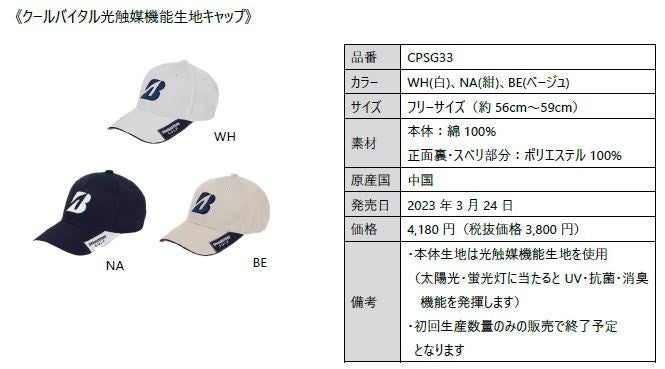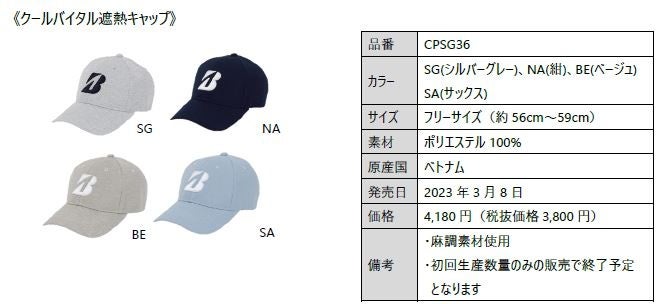 ブリヂストンスポーツ株式会社は、梅雨時期から盛夏向け商品として冷感効果をもたらす機能を搭載したゴルフキャップをアイテム別に順次発売しています。価格は下記の商品概要に記載のとおりです。