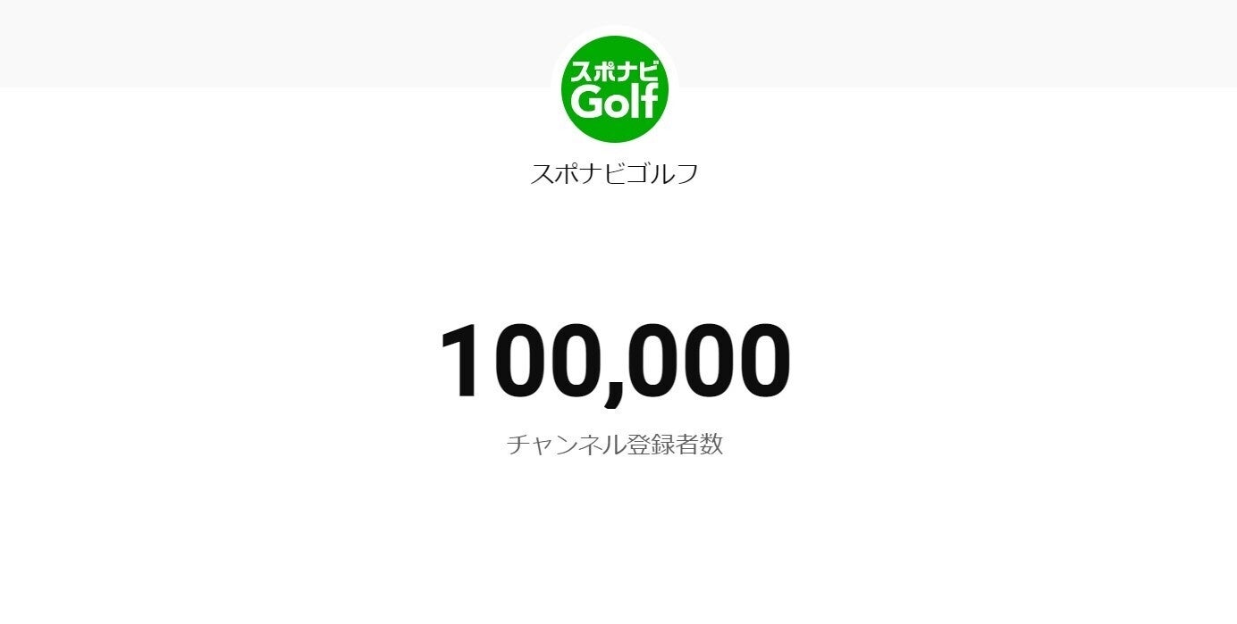 スポーツナビが運営するYouTubeチャンネル「スポナビGolf」が、26日に登録者数10万人を達成いたしました。
