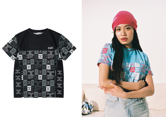 コラボレーションコレクションを象徴するロゴは、スポーティーかつ、しなやかなデザインに。線と線が交差するデザインは、女性アスリートとX-girl、人と社会との”繋がり”をイメージしています。
