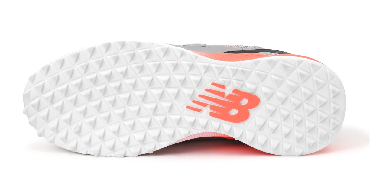 今回の別注ポイントはプレー中のムレを防ぐ通気性に優れたメッシュアッパー部分にはグレーを、足ブレを抑制し的確性を向上させるWrapパネルとつま先の保形性及びサイドポートに加え、朝露・汚れ除けに効果を発揮するマッドガードには上品な存在感と鮮度をもらたすシルバーを配色。踵をホールドするヒールカウンターにはブラックを用いることでアッパー全体をモノトーン調でシックにまとめています。卓越したクッション性と反発性を持つFuelCellミッドソール部分には夏の光から着想を得てホワイトからネオンオレンジのグラデーションカラーが好配色の1足が視線を集めるデザインとなっております。