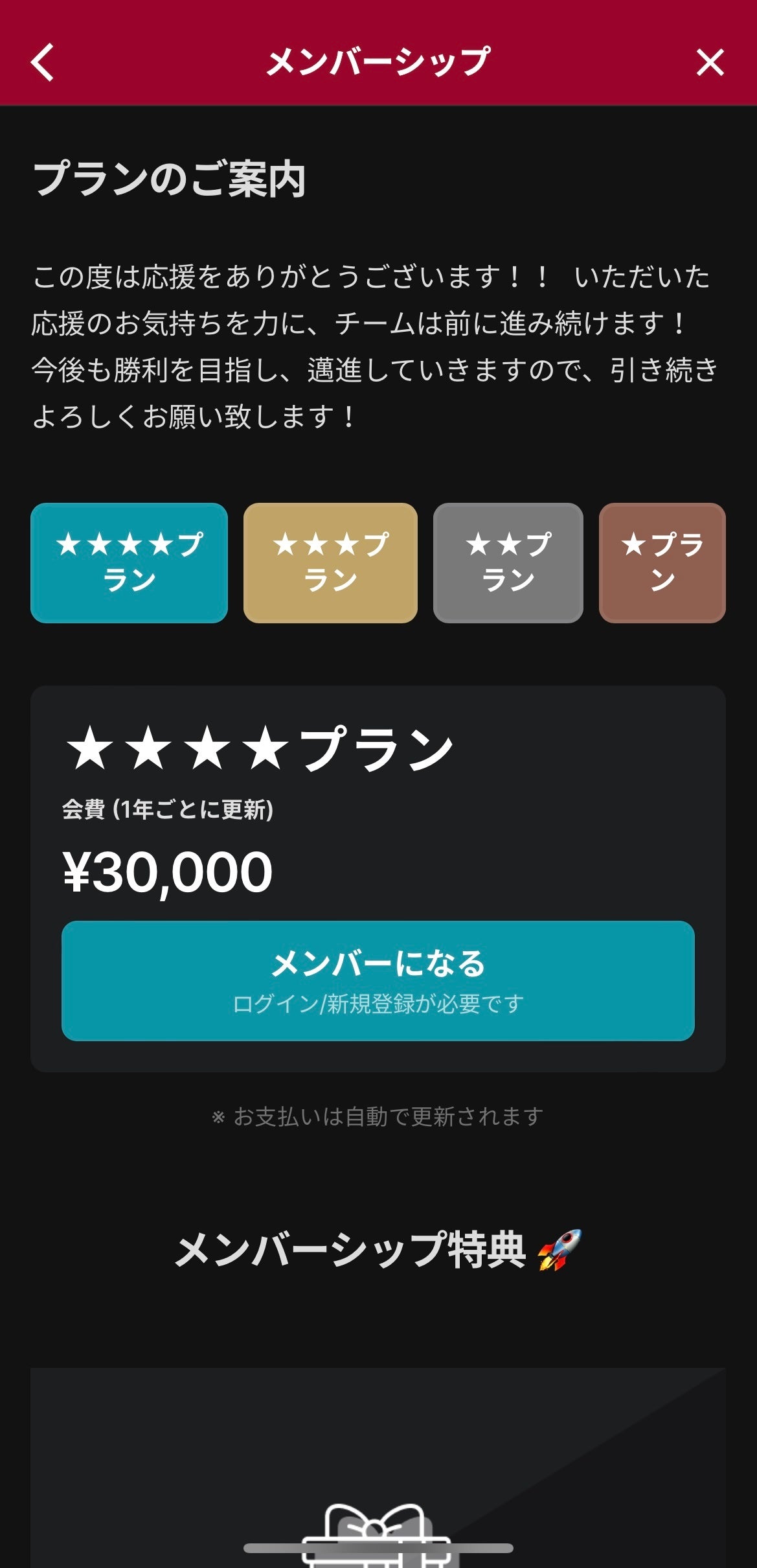 メンバーシップ機能からファンクラブ会員になって頂くと、チームから特別なグッズをお届けします!