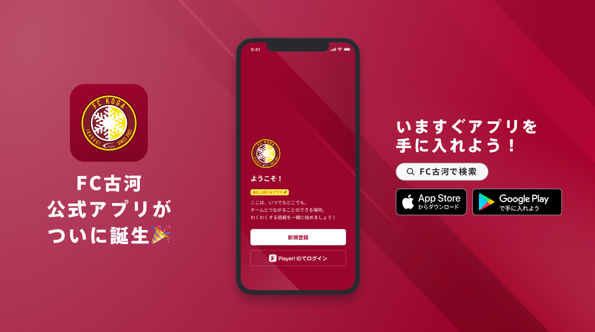 AppStoreもしくはGooglePlayで「FC古河」と検索!
