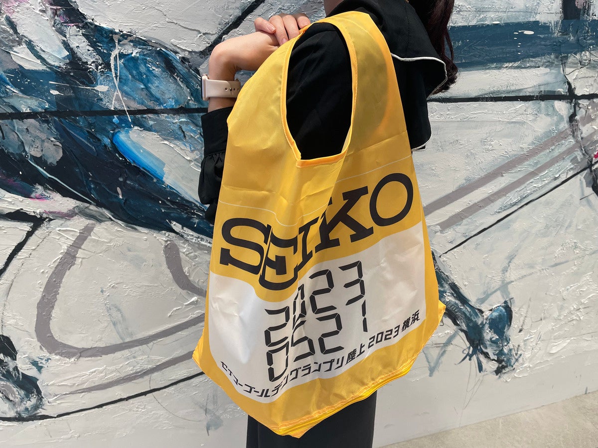 会場で着用して選手たちを応援、大会後はエコバッグとしてセイコーゴールデングランプリの体験を思い出しながら日常使いできる、SDGsにも貢献した一石二鳥のアイテム!