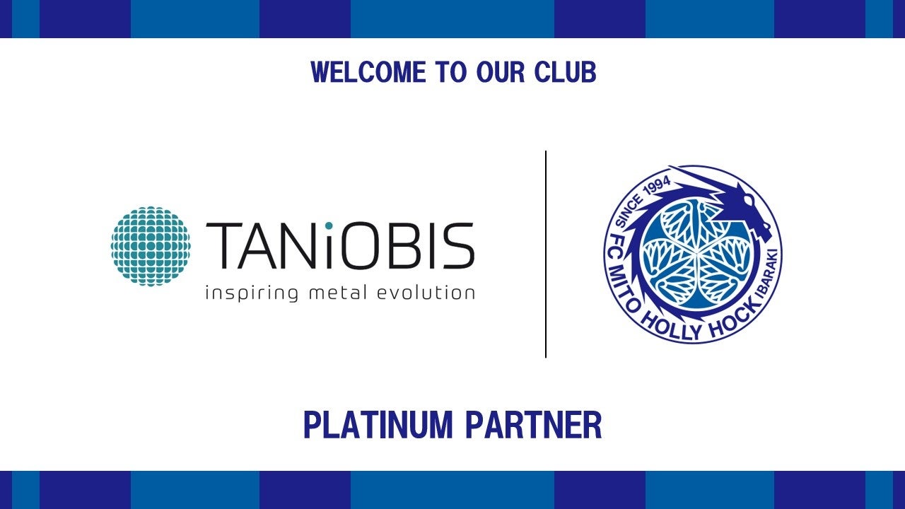 このたび株式会社フットボールクラブ水戸ホーリーホック(代表取締役社長:小島耕/以下「水戸ホーリーホック」)は、TANIOBIS GmbH(本社:ドイツ・ニーダーザクセン州 Chairman & CEO 飯田一彦)と、新たにプラチナパートナーとしてオフィシャルパートナー契約を締結いたしましたことをお知らせいたします。