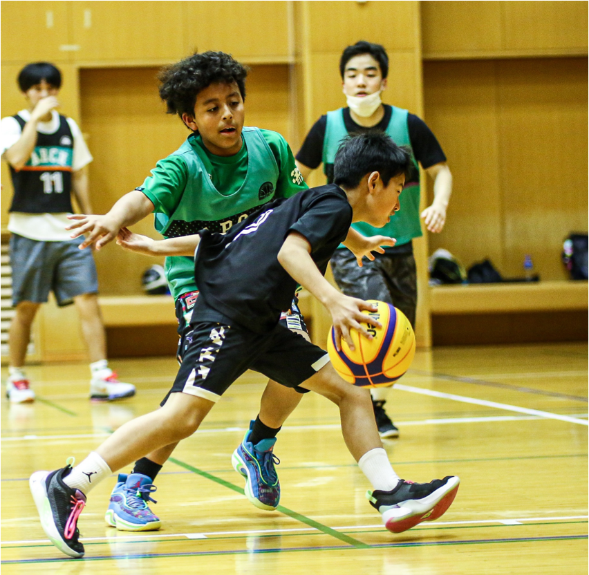 現役プロバスケ選手から教わるバスケクリニック。Day1は簡易的なゴールなのでドリブルスキルなどが中心になります。