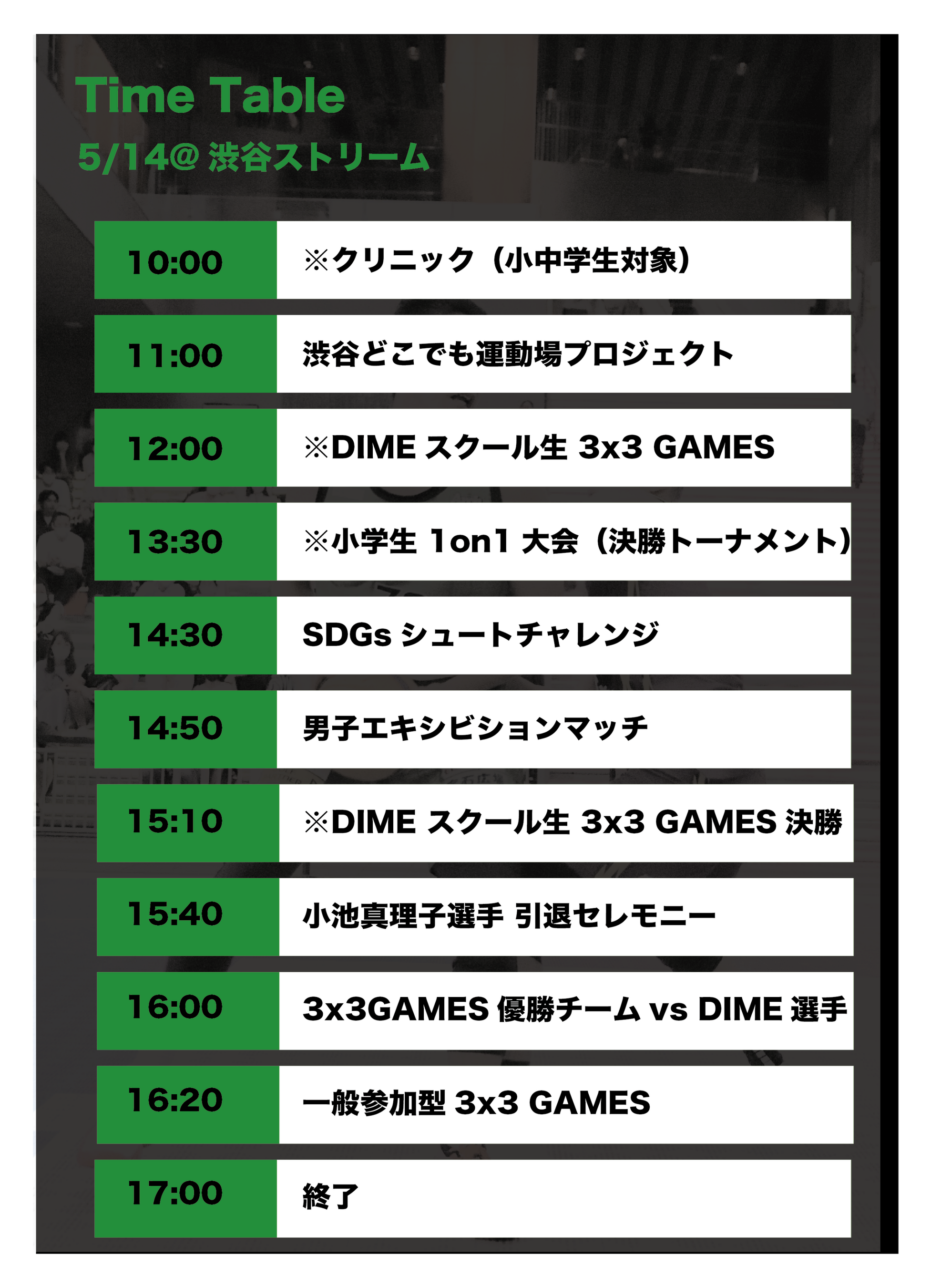 3⼈制プロバスケチームTOKYO DIMEが2017年に渋⾕キャスト、2018年に渋⾕ヒカリエで実施した3×3イベントがその前⾝となります。 2020年9⽉に⻘⼭学院⼤学および渋⾕ストリームで同イベント名にて初めて開催され、2021年には渋⾕区とも連携の上で、庁舎前シビルガーデンで開催予定だったが⾬天で中⽌に。2022年にひがし健康プラザで開催され、岩下達郎選⼿の引退セレモニーも併せて実施されました。