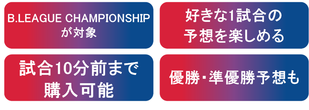 独立行政法人日本スポーツ振興センター(JSC)は、日本生命 B.LEAGUE CHAMPIONSHIP 2022-23を対象とした1試合予想くじ「WINNER(ウィナー)」を、本日販売開始いたしました。
