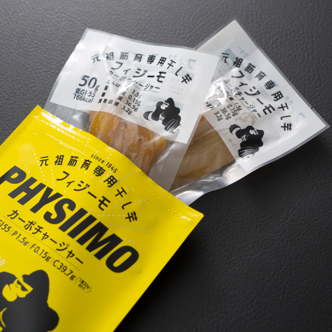 PHYSIIMOの重なる‘I’は、physique愛とorganic干し芋への愛(I)を重ねて、フィジーク専用干し芋「PHYSIIMO(フィジーモ)」と命名しました。また、~PHYSICAL IMPROVEMENT MOTIVATION~肉体を鍛えぬく日々、ココロとカラダのエネルギーにして欲しいとの想いも込められています。