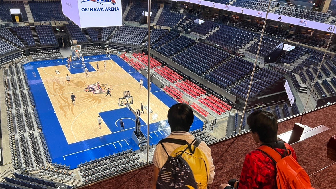 5月9日(火)に沖縄アリーナにて沖縄県立名護特別支援学校中学部の生徒29名とキングスのバスケットスクールコーチやマスコットのゴーディーとの交流会を実施しました。