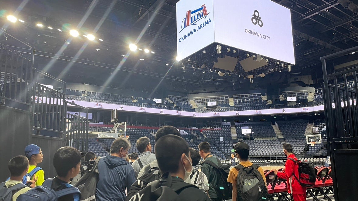 5月9日(火)に沖縄アリーナにて沖縄県立名護特別支援学校中学部の生徒29名とキングスのバスケットスクールコーチやマスコットのゴーディーとの交流会を実施しました。