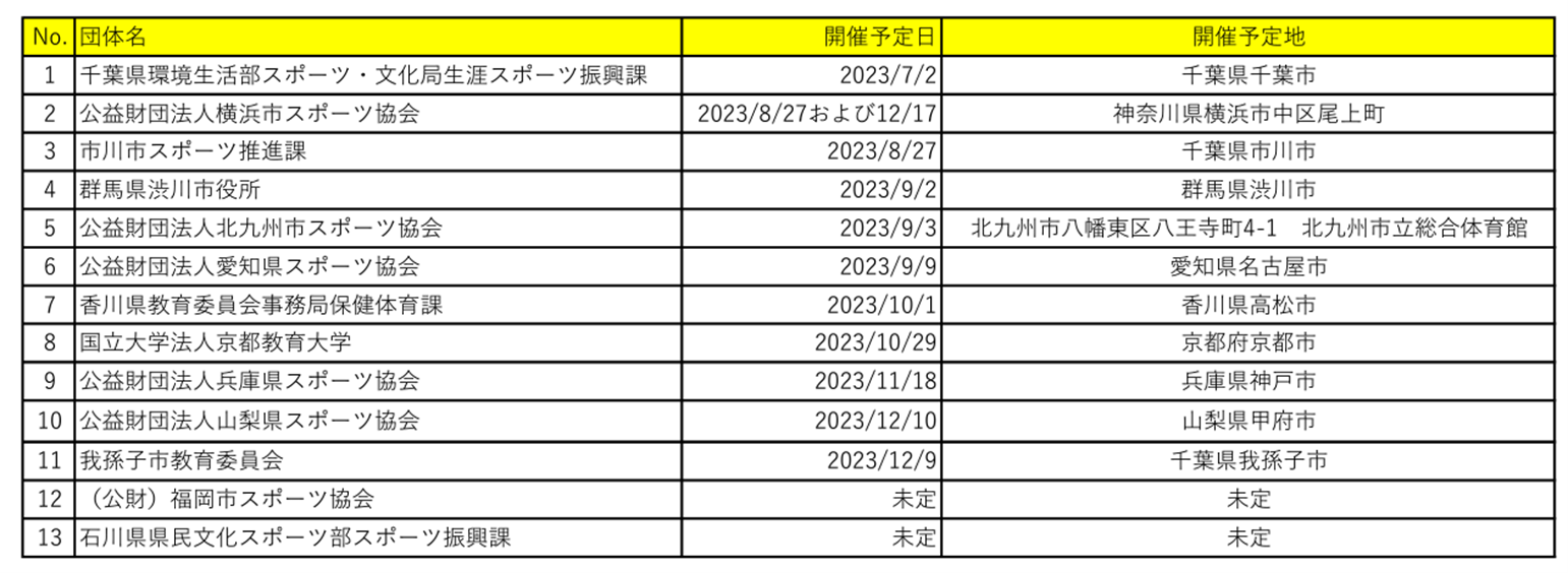 ●令和5年度の集合講習は、大阪体育大学の他、現時点で下表の団体にて開催予定です。