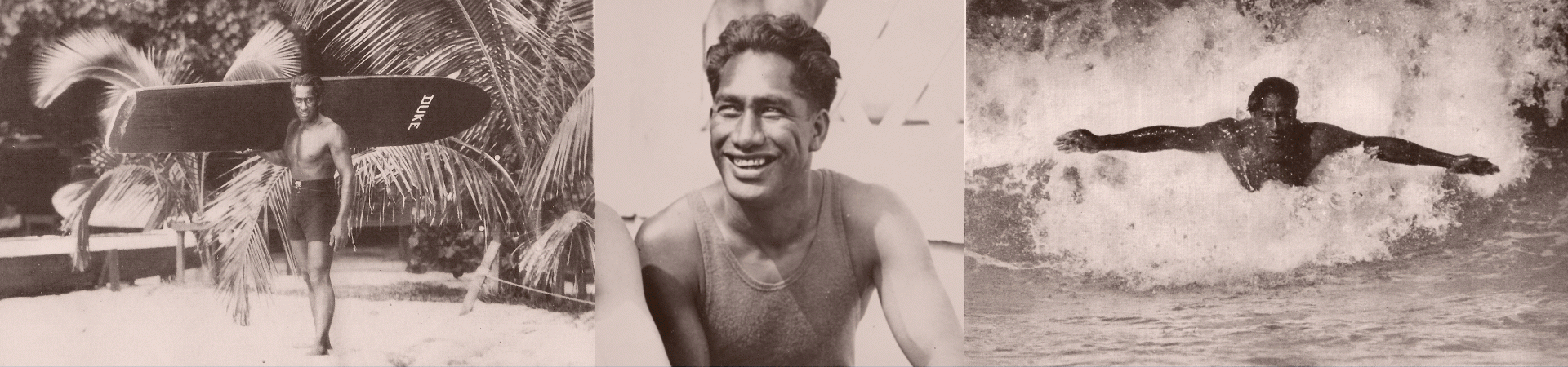 デューク・カハナモクは1980年にハワイ王国に生まれ、米国代表としてオリンピック競泳種目で三度の金メダルに輝きました。また、サーフィンを世界中に広めたことで「近代サーフィンの父」とも呼ばれ、有名なワイキキビーチの銅像を含め、世界3カ国のビーチに銅像が建てられています。さらにはサーフボードを使用したライフセービングを行ったことがきっかけで世界的なライフセービング方法の発展にも寄与するなど、「究極のウォーターマン」として今日でもハワイのみならず世界中でその功績が称えられています。
