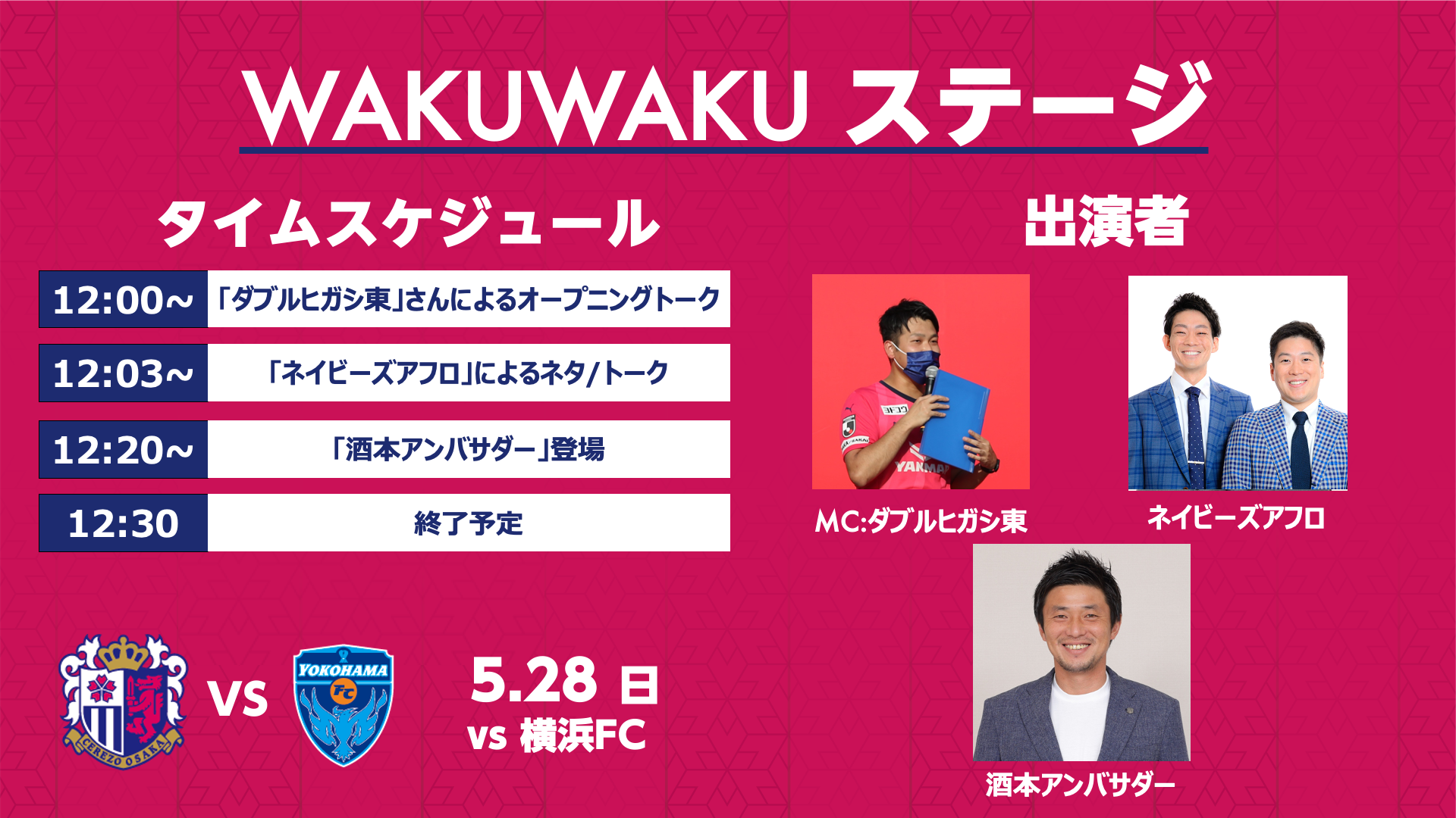セレッソ大阪では土日祝の試合を中心に、スタジアム場外でもWAKUWAKUを感じていただけるように「WAKUWAKUステージ」を開催いたします。