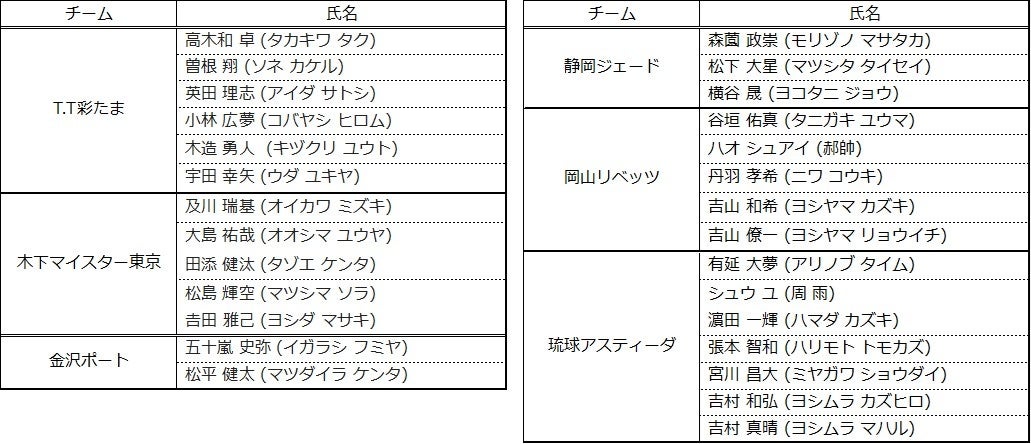 Tリーグでは、2023-2024シーズン 登録完了選手を以下の通りお知らせいたします。