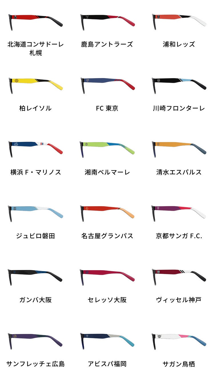 サングラスは各クラブの特色ある色とエンブレムをデザインに取り入れ、クラブとの一体感を高めるよう設計されています。紫外線の量に応じてレンズの色調が変化する調光レンズを採用しており、屋内では普通のメガネとして、屋外ではサングラスとして使用できます。また、Jリーグロゴが入ったオリジナルの巾着も付属します。