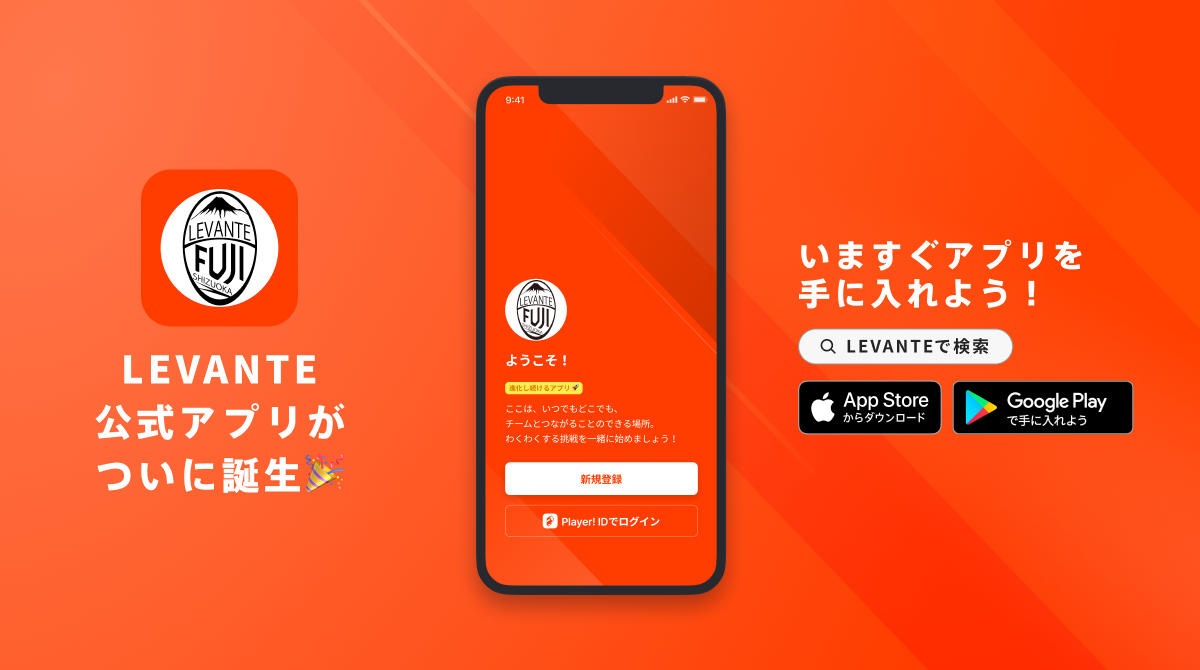 AppStoreもしくはGooglePlayで「LEVANTE FUJI SHIZUOKA」と検索!