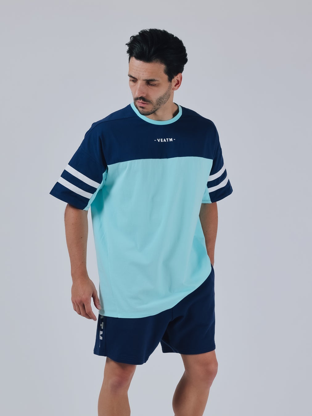 バックにラインが大胆に入りミラーロゴのプリントと脇のパイピングが