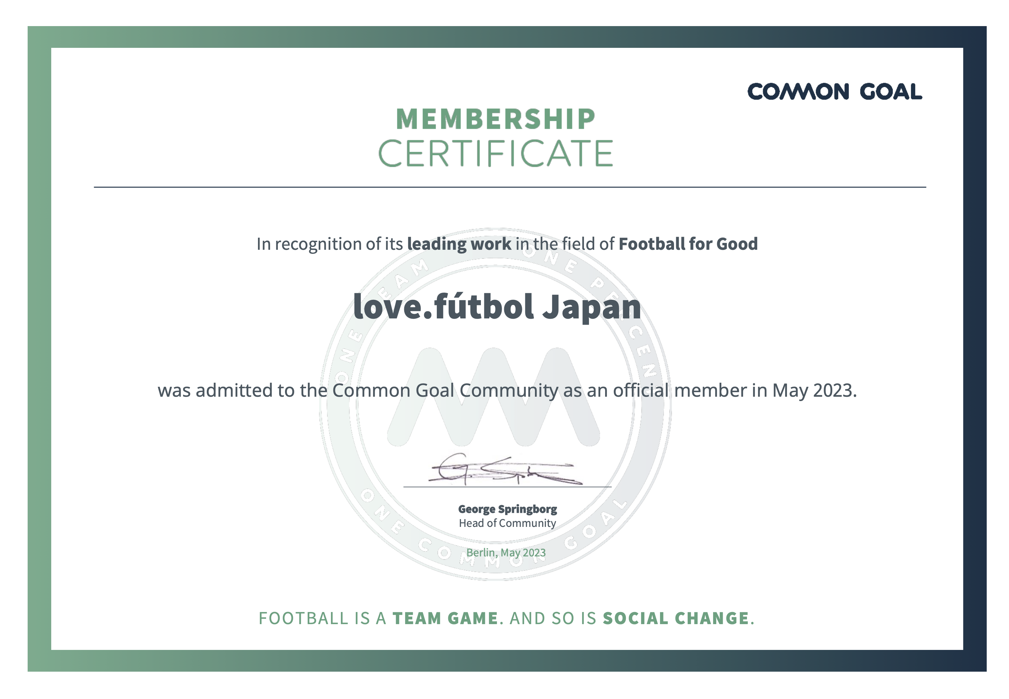 今回、love.fútbol Japanは、日本で初めての公式メンバーに承認され、世界各地でFootball for Good分野で活動する170以上の団体と連携・知見共有、1%寄付による資金へのアクセス、各パートナー企業との協働プロジェクトへの参画が可能になります。