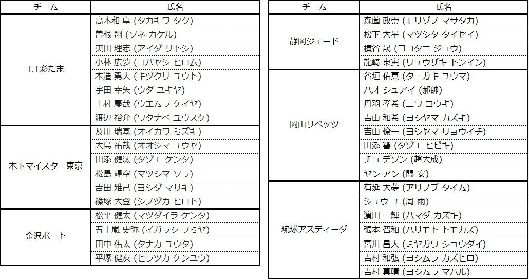 Tリーグでは、2023-2024シーズン 登録完了選手を以下の通りお知らせいたします。
