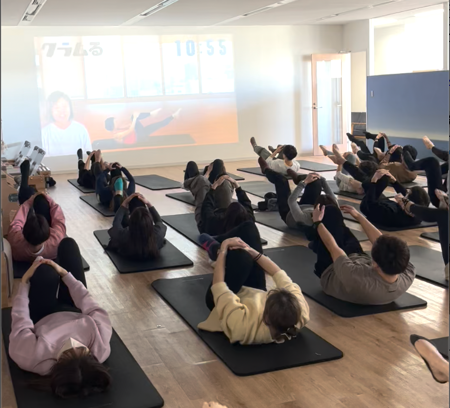 本部社員は、当社の集中型オンライン動画レッスン「クラムる」で毎日12:00~15分・20分のエクササイズや瞑想を行っています。
